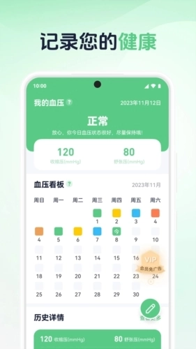 健康提示告知:本应用将依据用户的血压测量数据给出适配的健康指导,助力用户纠正日常生活里的不良行为习惯。