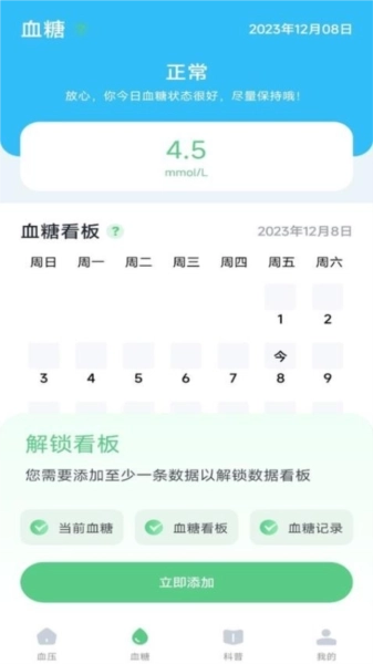 拥有便捷的数据添加工具,能够助力用户一键录入血压和血糖数据。