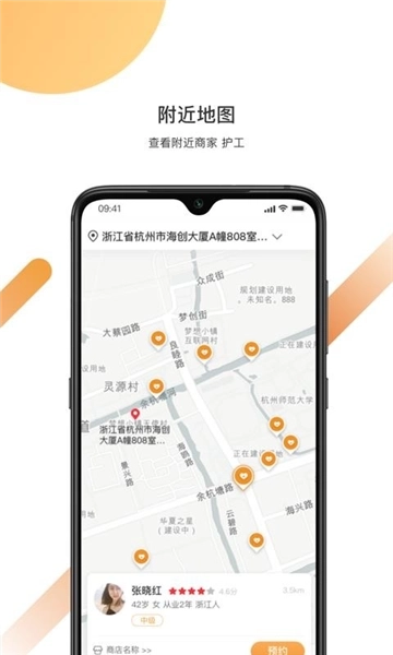 6、应用内设有地图板块,用户可在此查看自身附近的护工及商家信息,并能快速前往;