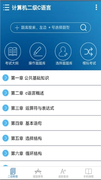 计算机二级C语言学习软件也被称为C语言二级掌上通,它是一款无需联网、不消耗流量的离线学习工具。软件内整合了C语言教程(涵盖培训机构内部经典教学内容)、C语言选择题库、公共基础题库以及非选择题库,教程与各类题库全面覆盖了考试的考点和重点内容,适合广大备考计算机二级C语言考试的学子学习使用。