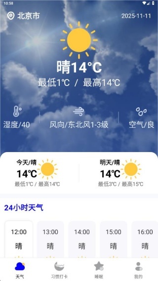 1、精准15天天气预报:可准确预测未来15天天气情况,精准度高,一键即可快速查看,还能助力提前规划行程,无需担忧天气临时变化带来的影响。