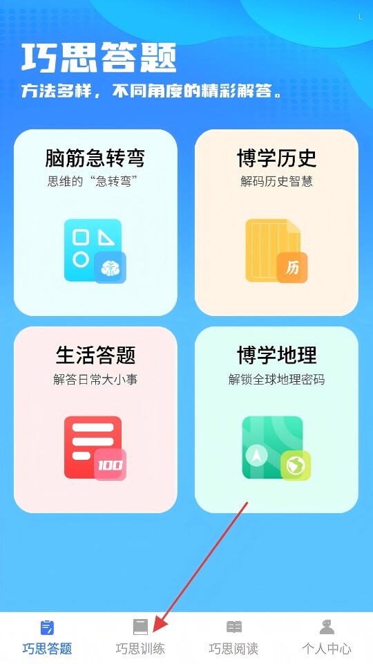 1、点击底部【巧思训练】选项,进入巧思训练页面。
