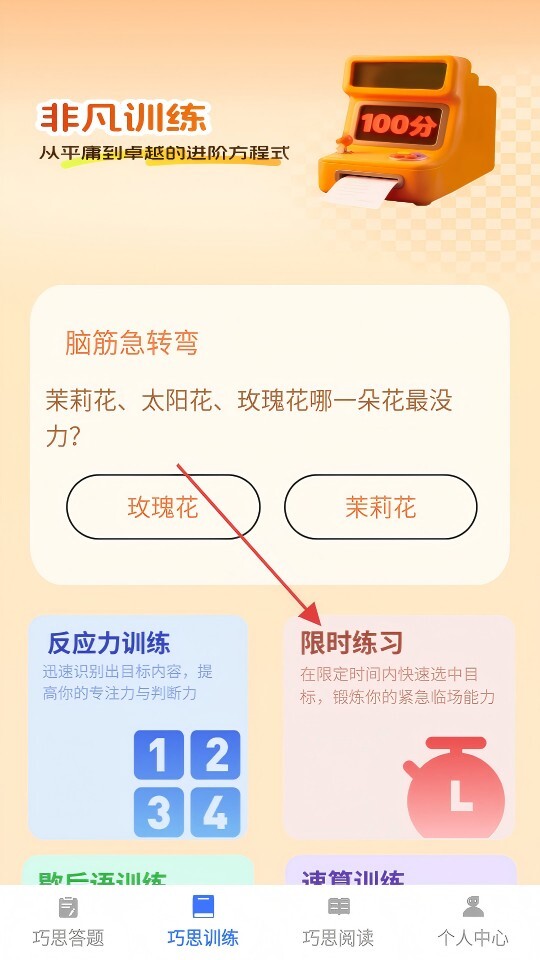 2、在巧思训练页面点击【限时练习】,进入限时训练页面。