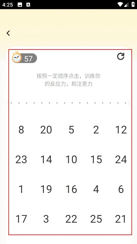4、在训练界面按数字从小到大的顺序依次点击,在规定时间内完成训练任务。