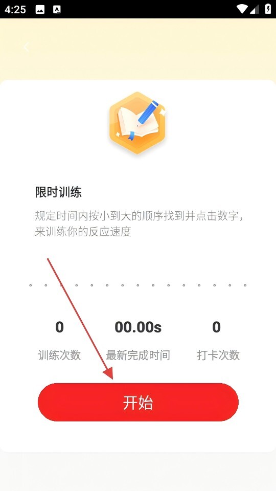 3、在限时训练页面点击【开始】按钮,即可进入数字点击训练界面。