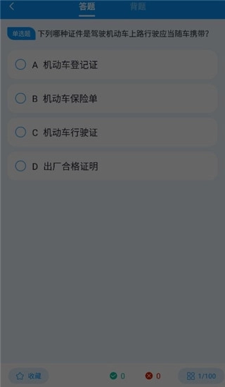 3、理论考试环节,我们提供小车、货车、客车、摩托车等不同车型的题库,同时也涵盖教练员、货运证、危险品运输、客运、出租车等各类资格证的相关题库。