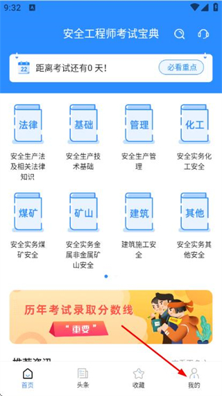 1、打开安全工程师考试宝典,在首页点击底部的“我的”选项,即可进入个人中心页面。