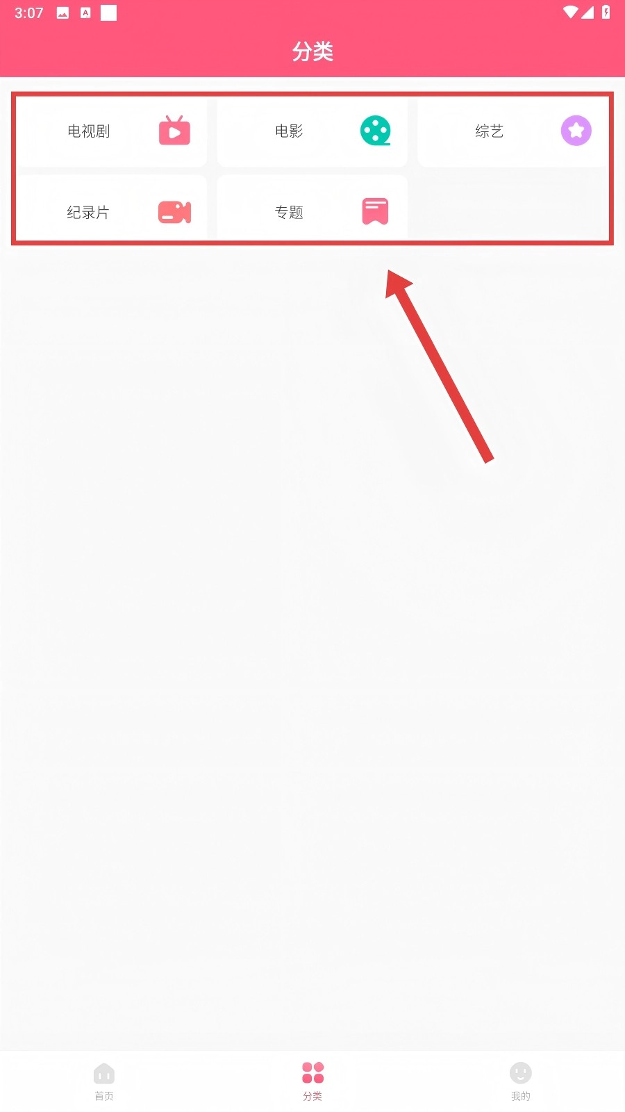 1、启动软件后,在首页底部找到并点击【分类】按钮,即可进入影视分类页面,这样能更便捷地筛选我们想看的内容呢。