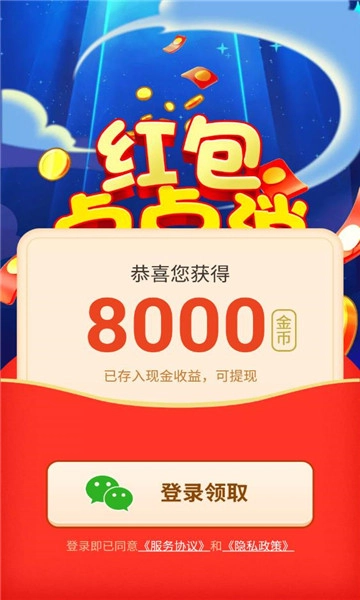 新用户首次登录即可获得8000金币奖励,提现门槛低至1元,还能邀请好友共同参与活动。