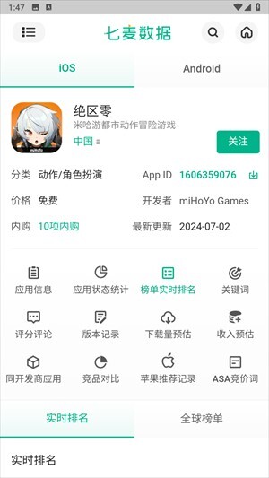 直观的数据分析:七麦数据通过直观形式展示Android与苹果系统的最新热门应用排名,助力用户迅速把握市场动态。