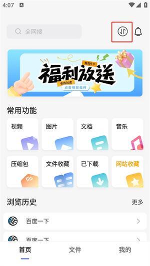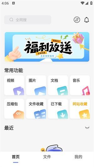 2. 于首页能够瞧见丰富多样的常用功能,其中涵盖视频、图片、文档、音乐、压缩包等。