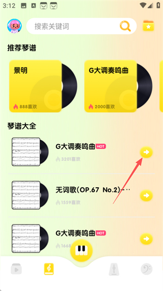 2、进入琴谱页面后,挑选你想要查看的琴谱,点击进入该琴谱的详情页面。