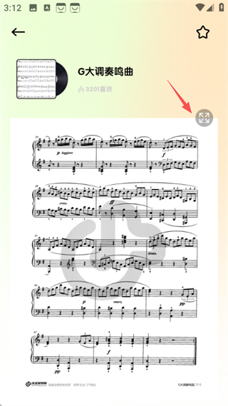 3、进入琴谱详情页后,点击全屏图标,就能以全屏模式查看该琴谱的内容。