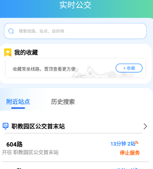 用户可以把常用路线添加到收藏夹里,下次出门时只需一键点击,就能查看该路线的实时公交信息,不用再重复搜索了。