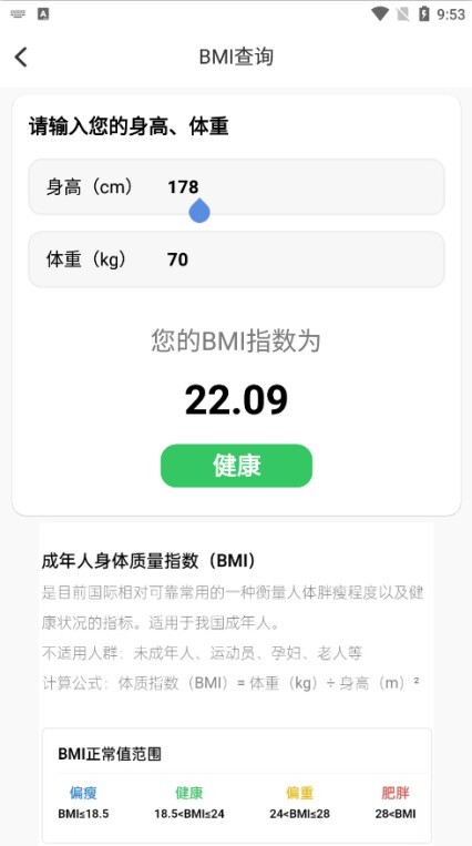 2、体脂率可直接在线查询,通过控制卡路里摄入量,能让生活中的减肥变得更加轻松。