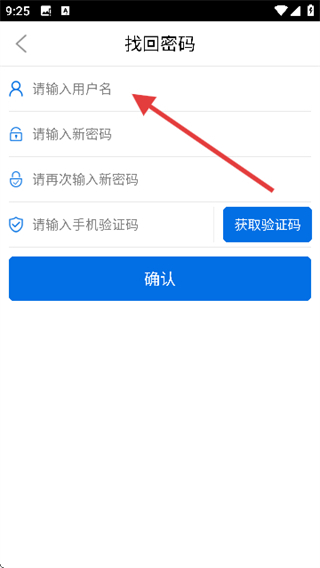2、在找回密码界面输入用户名。