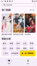 1、首页设有热门短剧板块与短剧分类专区,用户可自主挑选心仪的短剧。