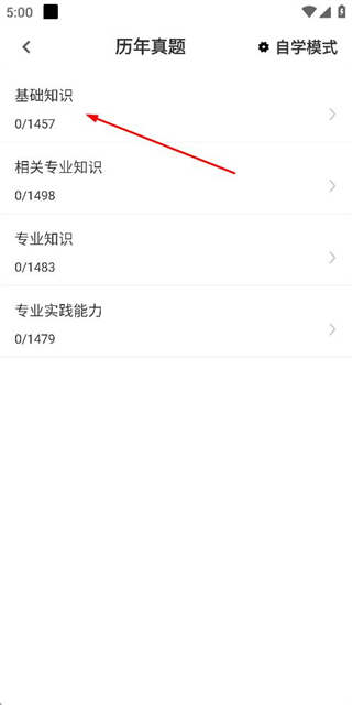 2、在分类页面中点击“基础知识”选项,即可进入基础知识的真题试卷列表页面。