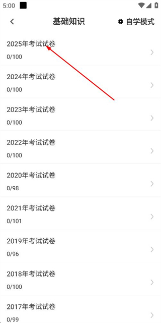 3、在列表页面选择“2025年考试试卷”选项,即可进入该试卷的答题准备页面。