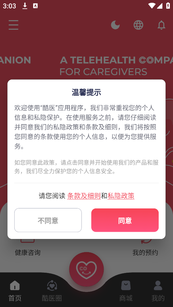 1、可以直接使用最新版本的软件,进入时需要先同意隐私权限。
