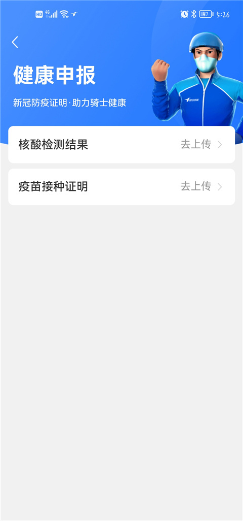 健康申报工具:每日进行身体状况报告的提交,以此保障配送服务的安全与可靠。