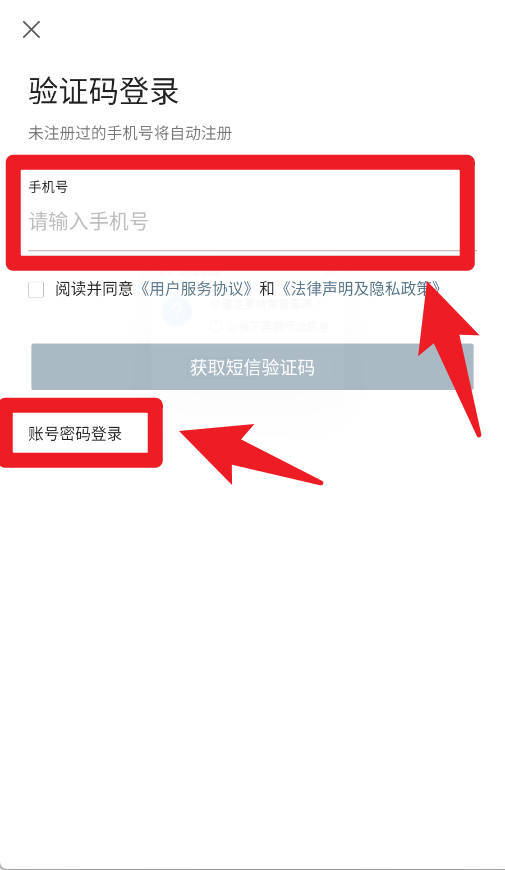 1、在验证码登录界面,输入手机号码后获取验证码,即可实现快速登录。此外,还能选择账号密码登录方式,以满足不同用户的需求。