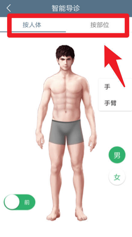 5、智能导诊具备按人体或部位选择症状的功能,系统会依据所选内容给出就诊建议,助力患者迅速找到适配的就诊科室。