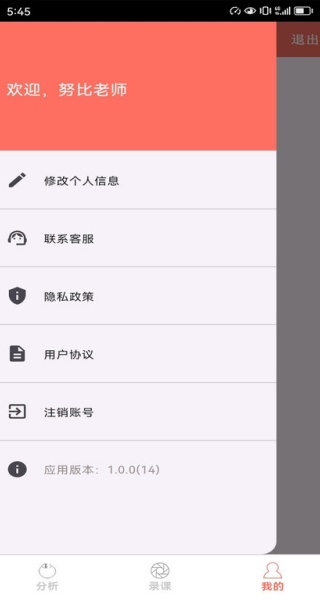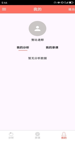 3、个人中心功能,可查看个人数据总览、统计录课及分析情况,还能进行账户登录、退出等管理操作。