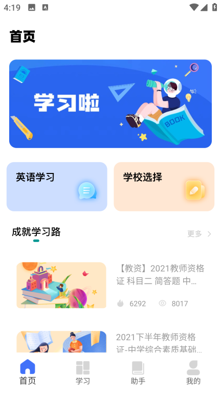 2、首页包含了英语学习和学校选择板块;