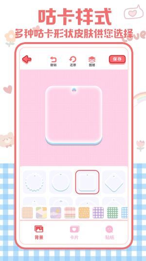 1、开启操作,第一步先挑选自己心仪的贴卡形状样式以及底部背景图案,以此构建起专属卡片的创作基础模板。