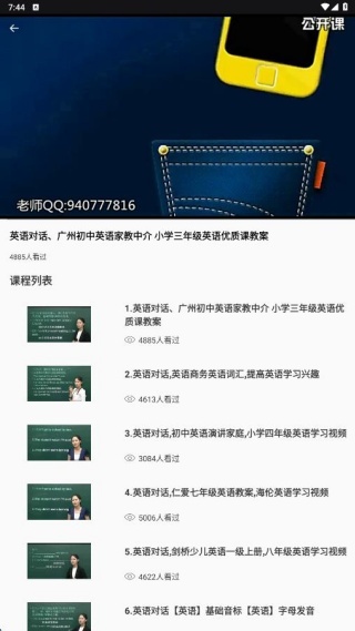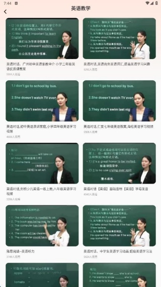 点击进入英语教学板块,就能浏览到多个主题的网课素材。
