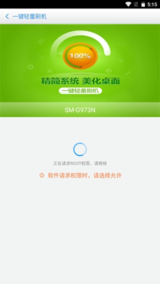 1、刷机前请保证网络连接稳定,并确认已取得ROOT权限,若尚未获取,可在应用内使用【一键轻量刷机】功能。