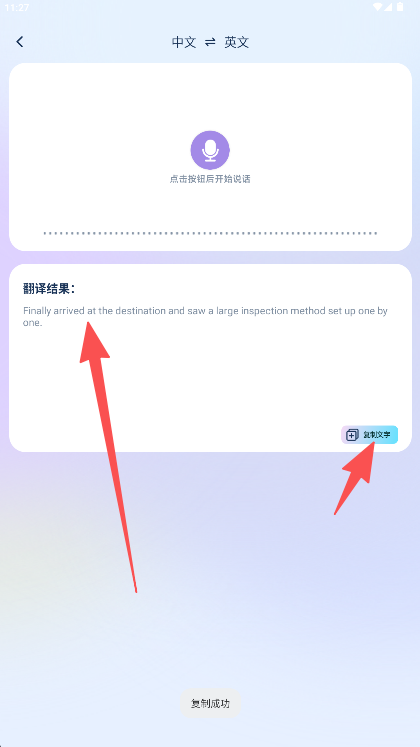 3、在结果页面点击“复制文字”按钮,一键即可获取翻译内容。
