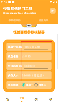 2、输入屏幕分辨率、机型名称、处理器等相关参数,然后选择对应的模式。