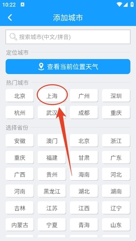 1、进入软件后,首先需要添加城市,把你日常居住的城市添加进去,这样后续查看天气会更方便。