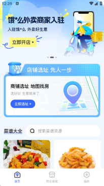 首页支持店铺一键选址功能,用户也能在该页面获取最新的菜谱资源。
