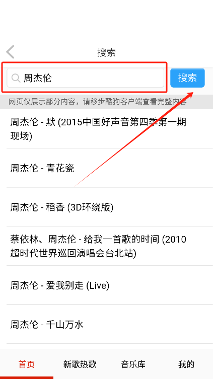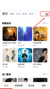2. 于首页或者搜索栏处,输入想要聆听的歌曲名称或相关关键词,接着点击搜索按钮。