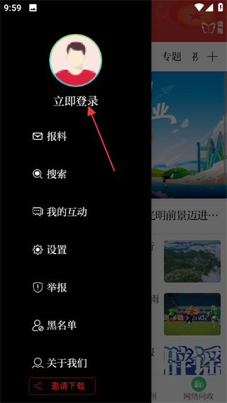 1. 开启“今日郴州”应用,轻触页面左上角的头像图标,个人功能菜单便会展开。