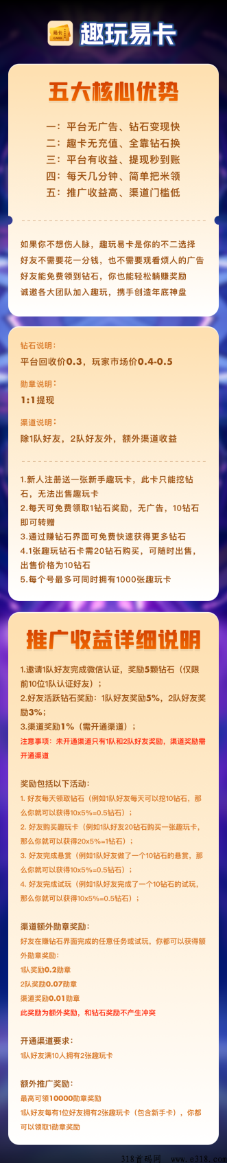 3、钻石回收机制:趣玩易卡推出保底回收机制,确保钻石不会无端浪费,让您的投资更具保障。