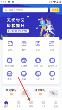 1、点击页面底部导航栏里的【课堂】图标,就能进入课程选择页面。