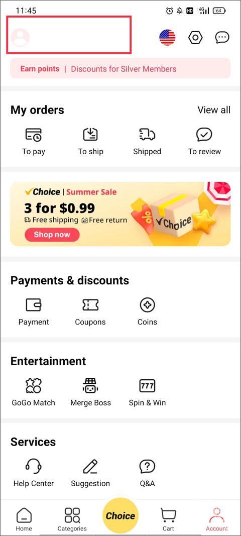 1. 开启并进入首页【Home】,切换至【Account】板块,接着点击头像进入个人页面。