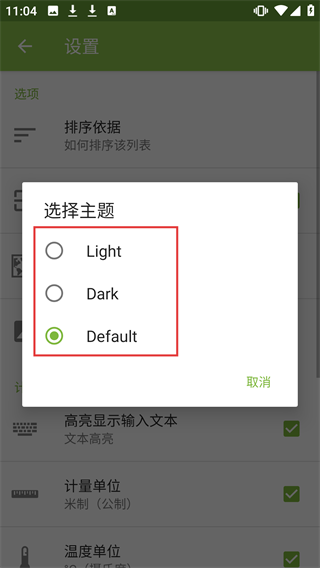 4、在【设置】里的【选择主题】选项中,你可以挑选Light、Dark或者Default主题,以此来切换应用界面的风格。