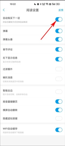 4、在阅读设置里,把自动购买下一话的选项关闭,就能取消自动续费功能了。