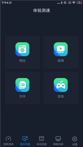 在体验测速功能时,系统会划分为网站、视频、文件等四大板块,用户能够依据自身需求选择对应的板块进行针对性测速体验。