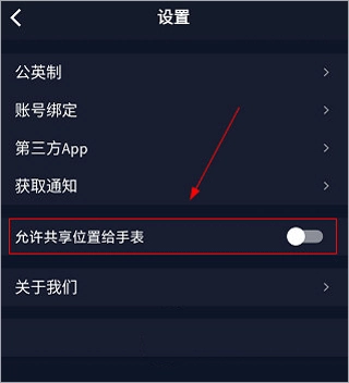 4、在设置页面选择允许向手表共享位置,这样就能记录手表的运动数据了。