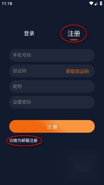 2、点击“注册”选项,默认采用手机号注册方式,也可切换为邮箱注册,填写相关信息后点击“注册”按钮即可完成注册操作。