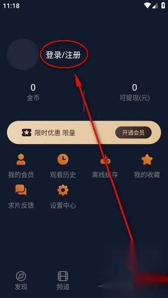 1、打开囧次元应用后,点击页面右下角的“我的”选项,接着点击界面左上方的“登录/注册”按钮;