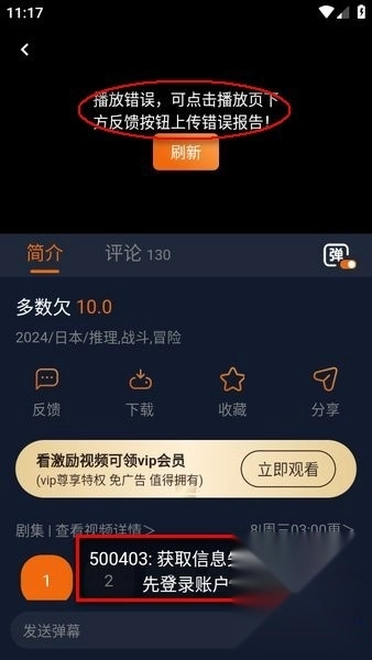 4、从v1.5.7.2版本开始,用户必须登录账号方可使用,若未登录则会出现播放错误提示。