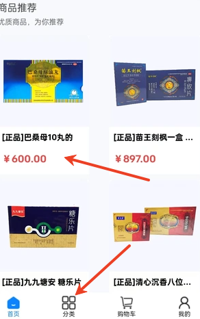 1、用户需进入商品分类板块,从中挑选心仪的商品。