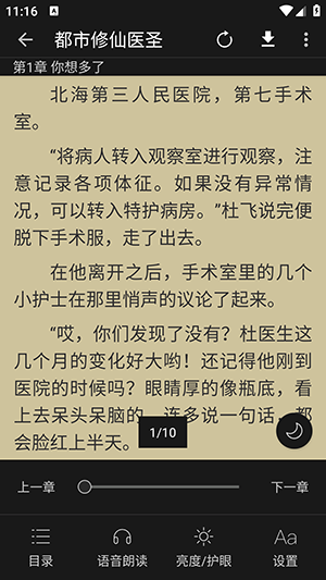 3、此外,具备护眼模式,能够对阅读界面的亮度与色温进行调节,呵护用户的视力健康,让用户尽情享受真正的精品小说阅读。